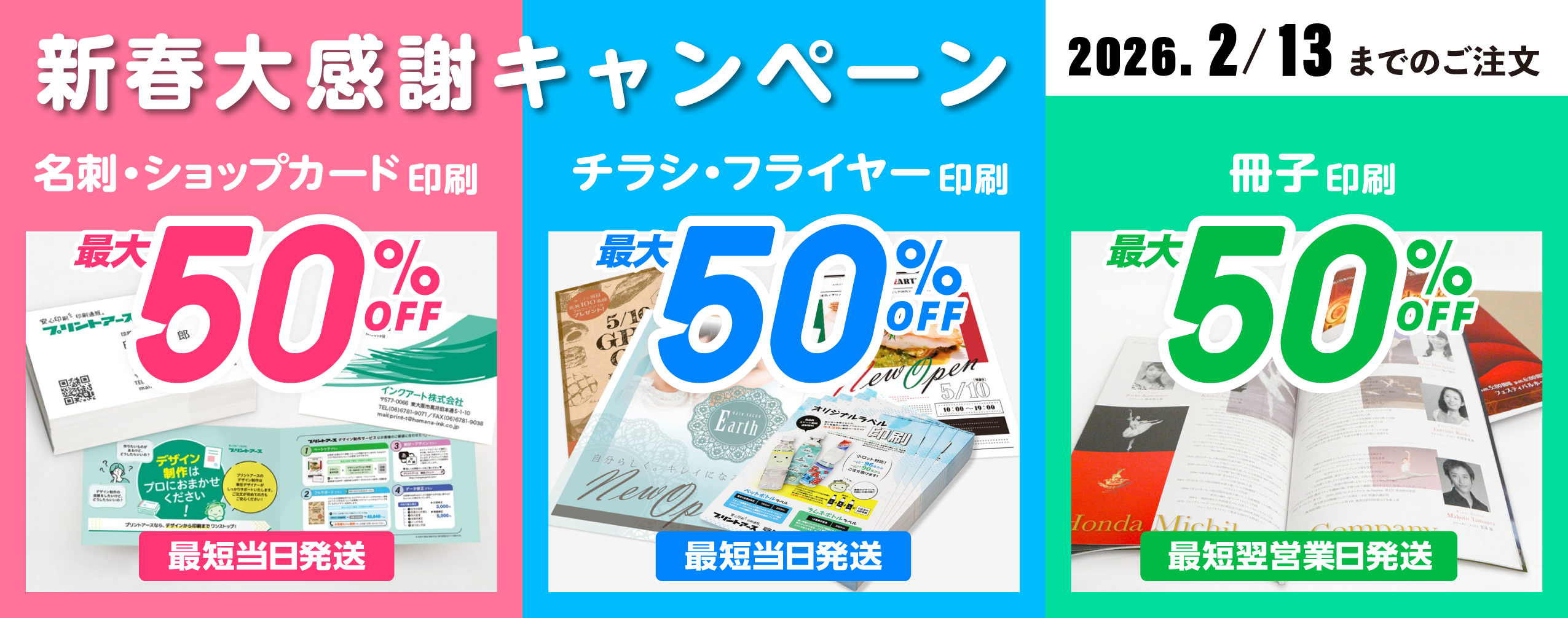 この印刷通販のシステムは、仕様や条件、価格などを全てオープンにすることで、印刷自体をもっと分かりやすく、身近に感じて頂け、注文が非常に簡単にご利用して頂けます。通信販売だからこそ安価で短納期、そして品質も高い印刷物をお届する事が可能になりました。印刷通販のプリントアースは、創業30年を超える確かな技術で、オフセット印刷で激安チラシ、格安フライヤー、人気の中綴じ冊子、手軽で使いやすい折パンフレット、イベントにもぴったりなポスター印刷など印刷商品全般を送料無料・リーズナブルな価格でご提供します。