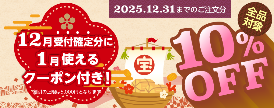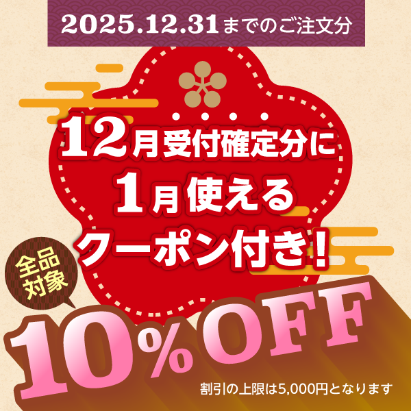 ただいま「12月購入で1月使えるクーポンGET」キャンペーンを実施しています。