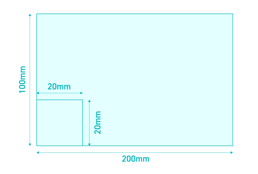 最小サイズ20×20mmから最大サイズ100×200mmまでの範囲内であれば、1ミリ単位でご自由に指定いただけます。