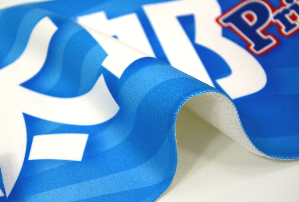 マフラータオル印刷は、210×1100mmの横長サイズにオリジナルデザインを片面フルカラーで全面印刷できます。