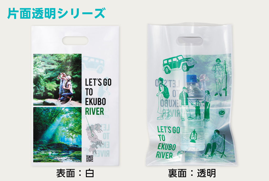 厚さは約0.08mmなので無料配布可能な販促バッグとしてお使いいただけます。両面フルカラー印刷に対応!