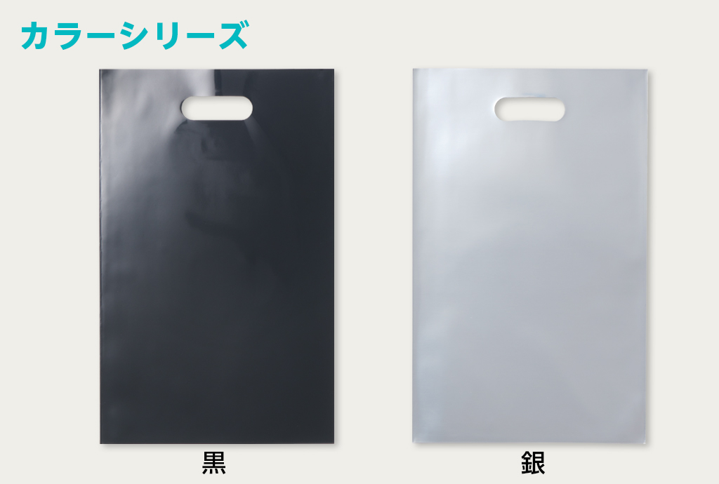 ベース色が黒または銀のポリバッグです。