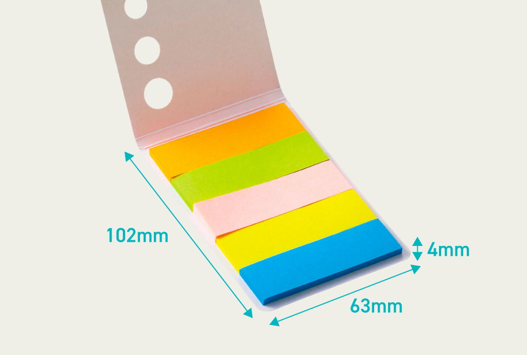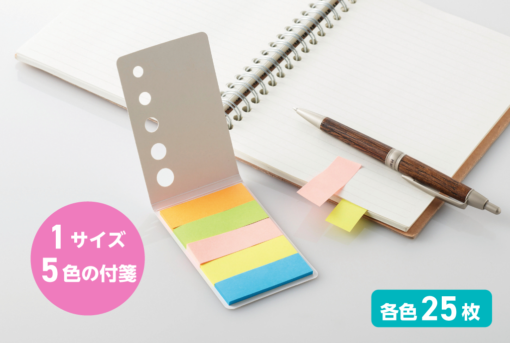 名刺サイズに5色分の便利さを凝縮。カラー分けで整理がはかどる、ポケットサイズの付箋メモ。
