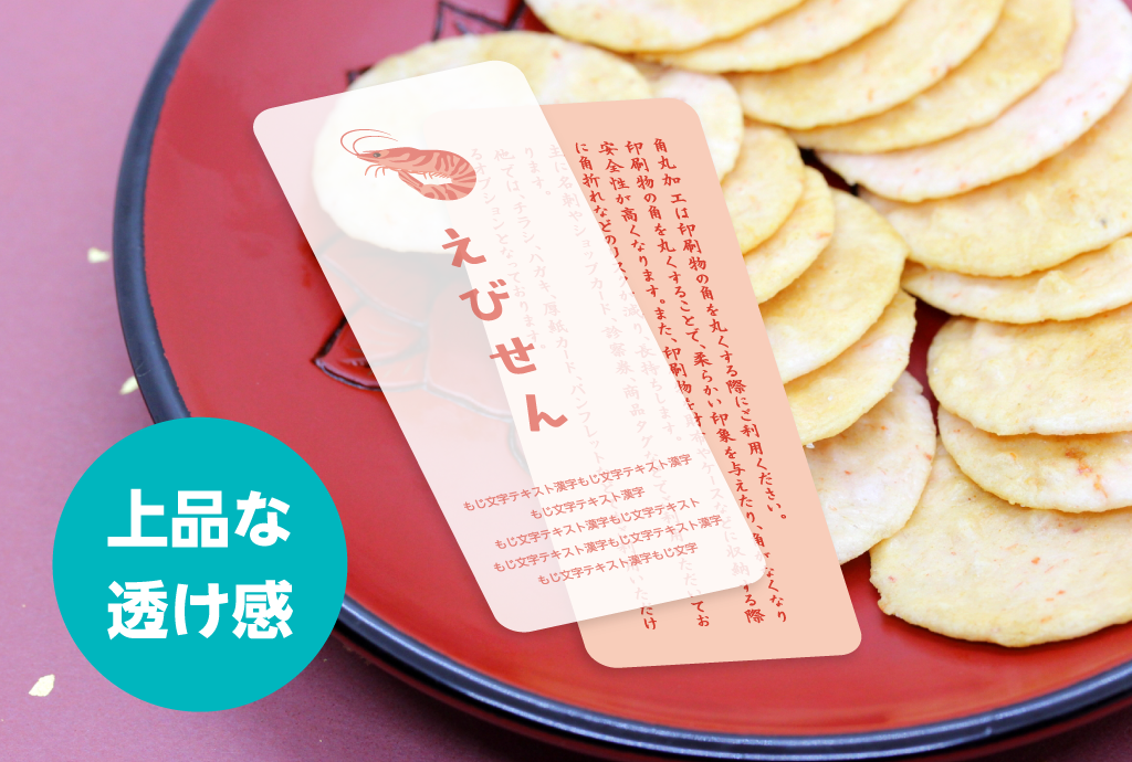 角丸加工を用紙の四方に施します。 角丸の半径をお選びいただくことが可能です。